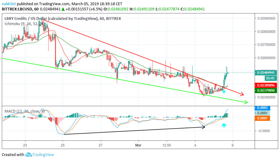 Given the above information, the price of LBC may break out above the first resistance area and reach $0.0265 and eventually $0.0275.