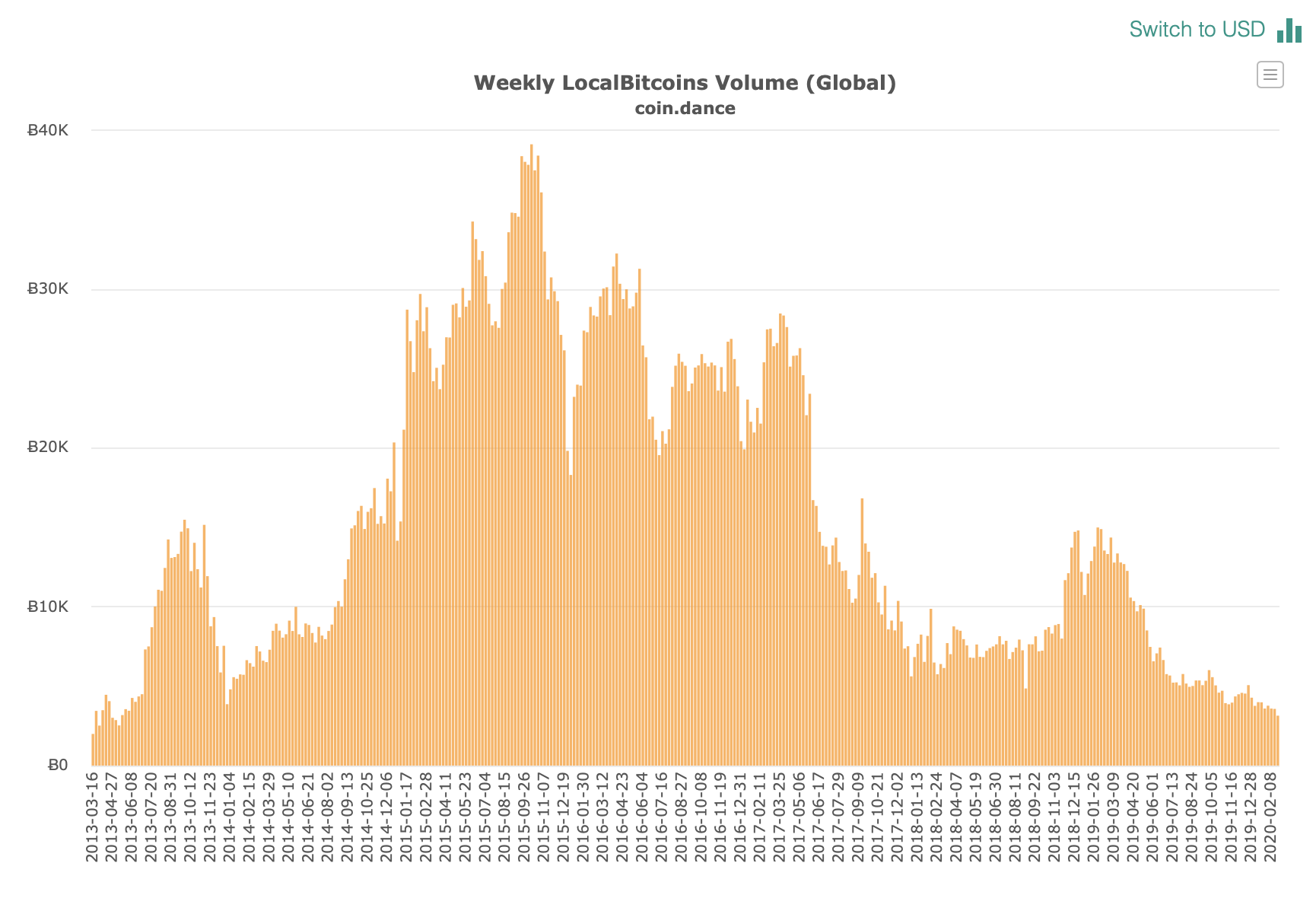 LocalBitcoins is considered to be a staple of the cryptocurrency industry. Started in 2013, it has often been a popular place for OTC trading. Since 2017, however, its weekly trading volume has steadily declined.