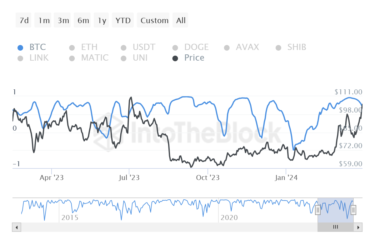 However, LTC and BTC coordination at the time of writing is declining from 0.89 to 0.7. This is not the best news for LTC since, historically, correlation decline has resulted in the altcoin falling on the charts.