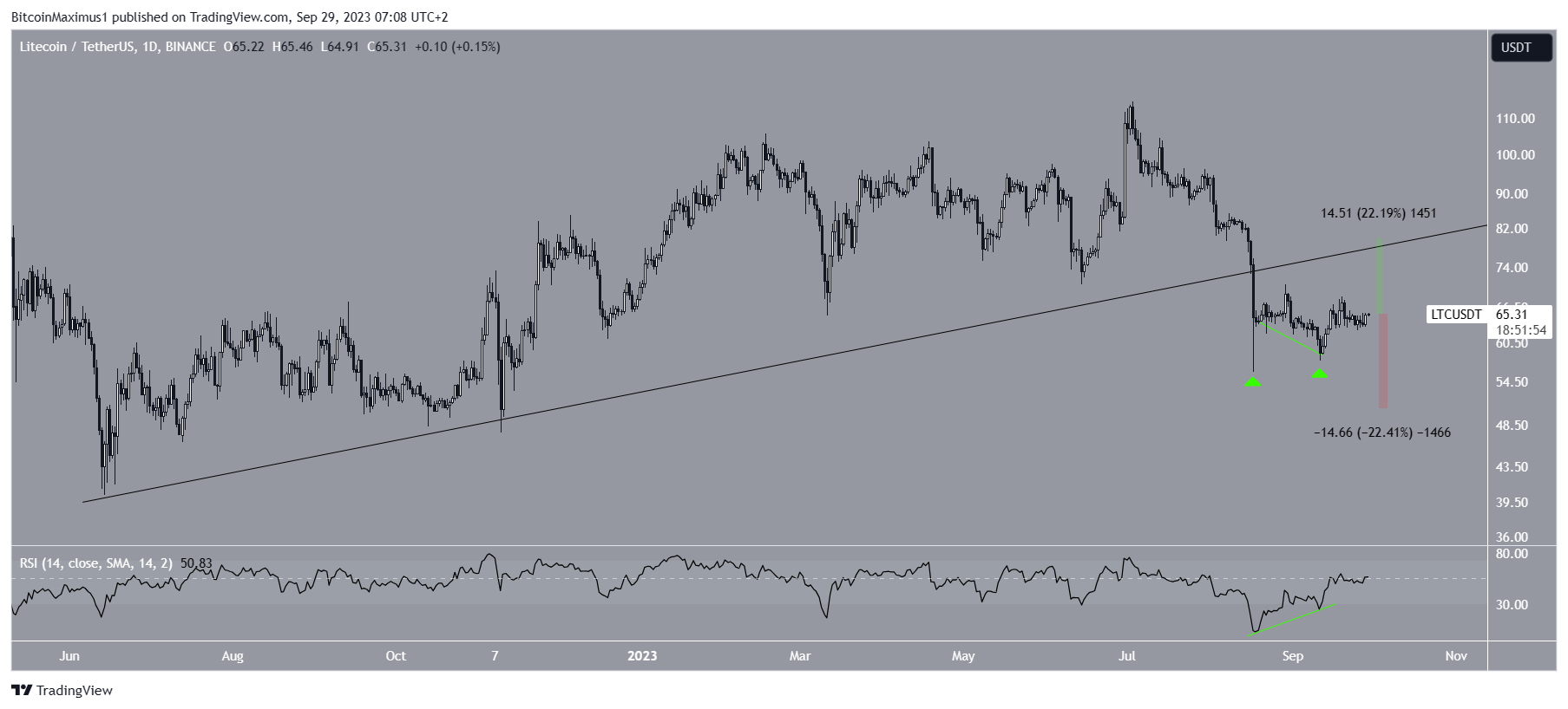 The Litecoin (LTC) price has decreased since its yearly high in July, falling by 50% in the process.