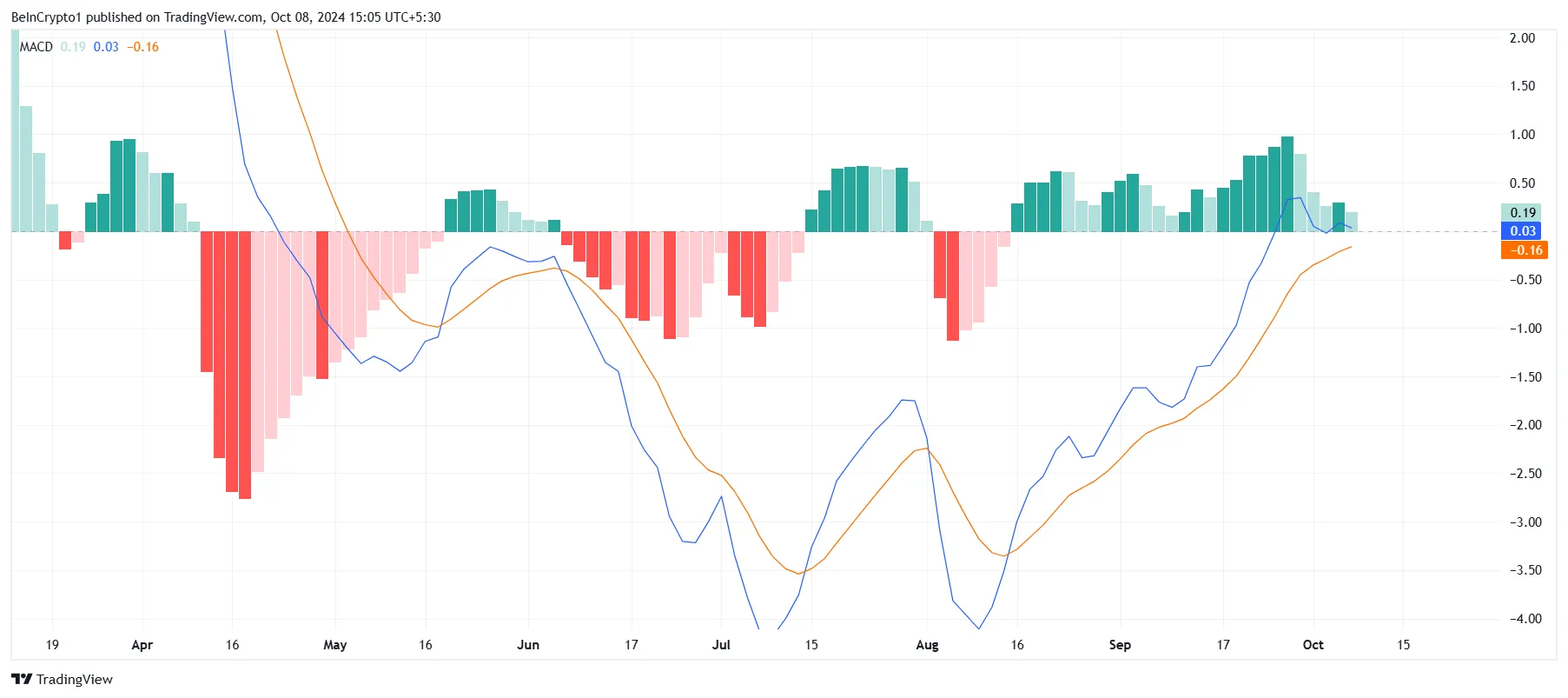 Despite the optimism surrounding whale activity, technical indicators paint a different picture. The Moving Average Convergence Divergence (MACD) indicator shows that a bearish crossover is imminent.