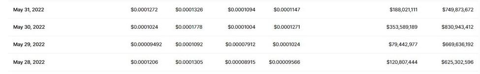 Although this figure may seem small due to the trading volumes of Bitcoin (BTC), Ethereum (ETH), Solana (SOL), Cardano (ADA), and Binance Coin (BNB), it was $1.74 billion more than Terra Classic (LUNC) trading volume within the same period. In the last four days of May, LUNC had a combined trading volume of approximately $741.86 million.