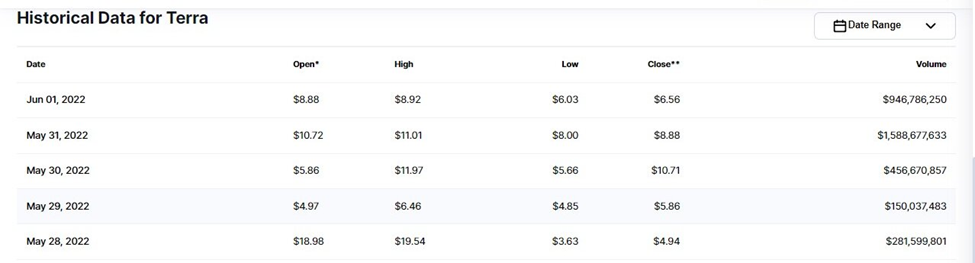 LUNA 2.0 opened on May 28, 2022, with a trading price of $18.98, reached a monthly high of $19.54 on the same day, and tested a monthly low of $4.85 on May 29. LUNA 2.0 ended May with a trading price of $8.88. Overall, this equates to a 53% dip in the opening and closing price of the coin. Â