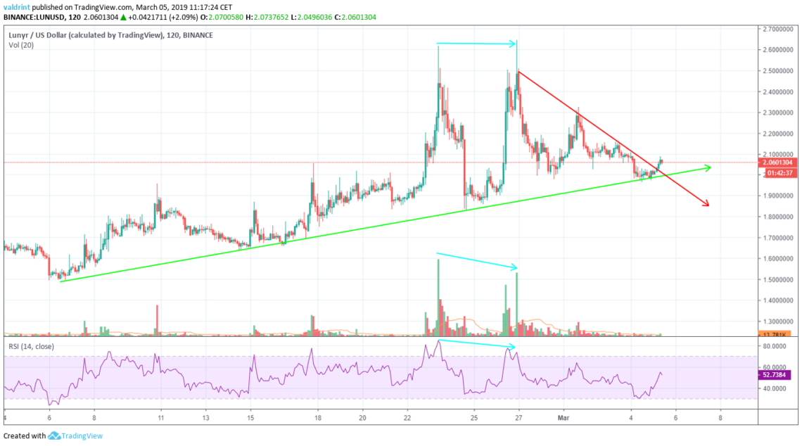 - Subsequent volatility has left Lunyr trading at around $2.10 on Mar 5.