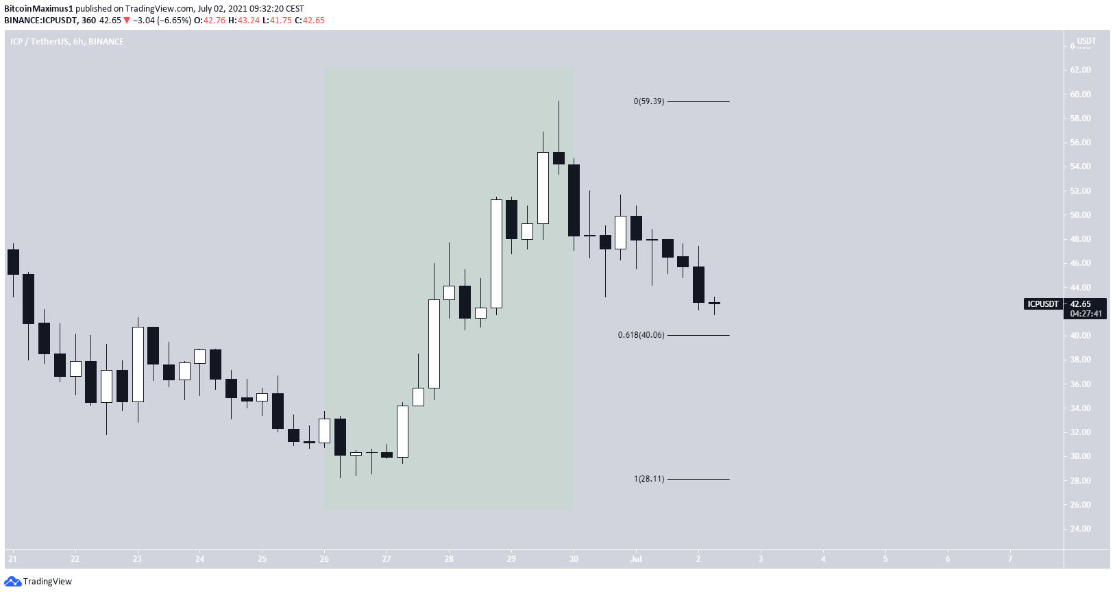 On June 26, ICP reached an all-time low price of $28.26. It has been increasing since in what seems like an impulsive movement (highlighted in green).