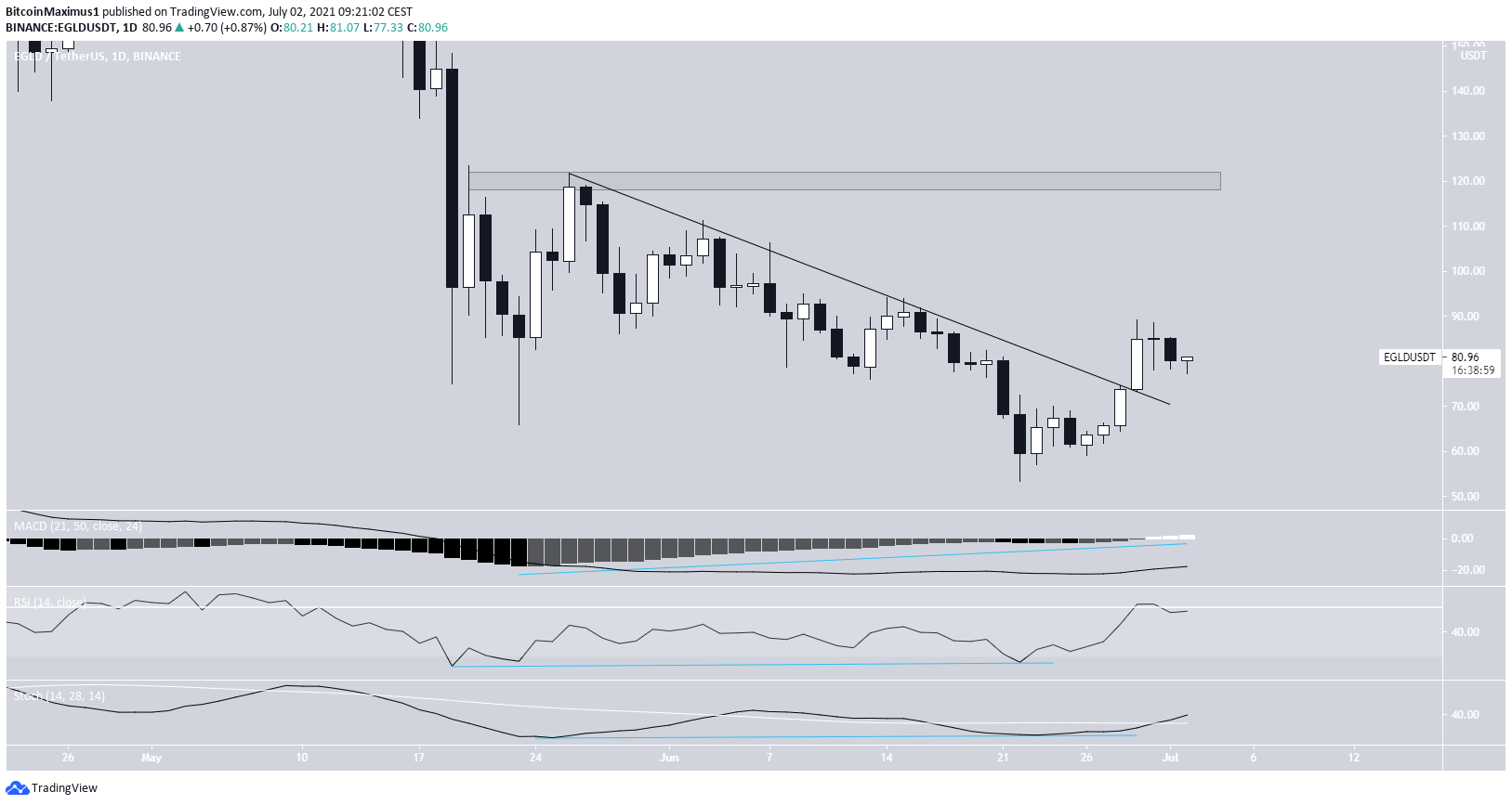 Afterward, EGLD broke out from the aforementioned descending resistance line. The closest resistance area is found at $120.