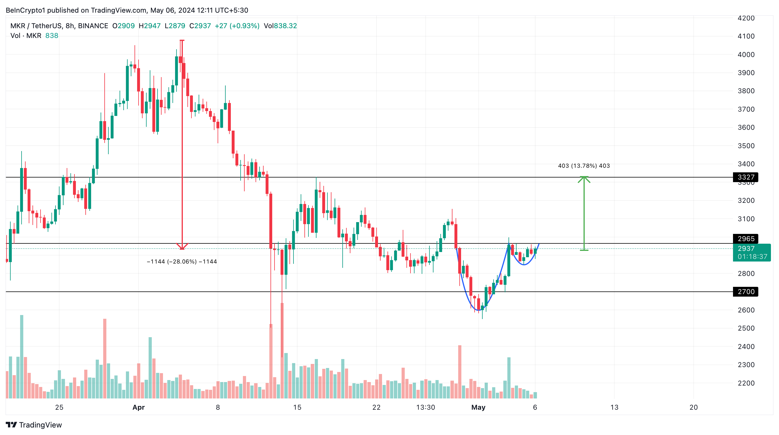 Despite recent market fluctuations that saw MKR dip by approximately 28% from its April highs, there are indications of a potential reversal.
