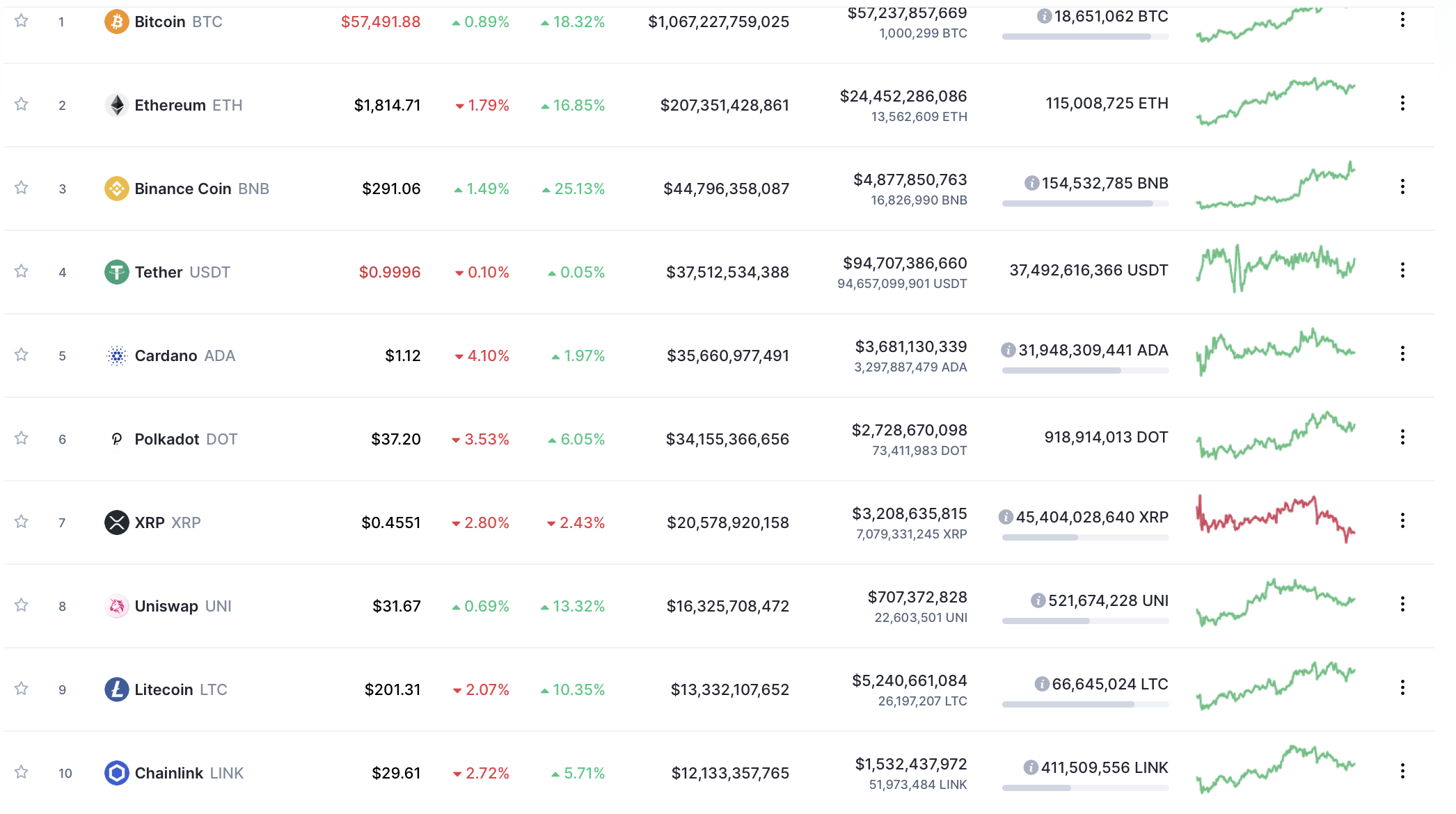 Bitcoin held steady on Thursday in its tread towards $60,000. This, on the heels of several multi-million dollar DEX investment purchases. Tether clamored back, kicking DOT down to sixth place.