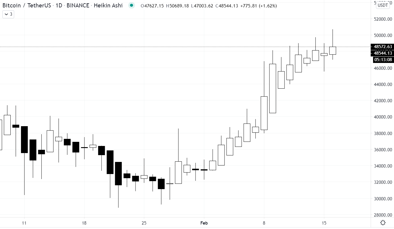 Bitcoin (BTC) saw another all-time high (ATH) on Tuesday, Feb 16. It briefly broke past $50,000 before seeing a correction. Altcoins, on the other hand, reacted to the BTC price movement with a predominantly red day.