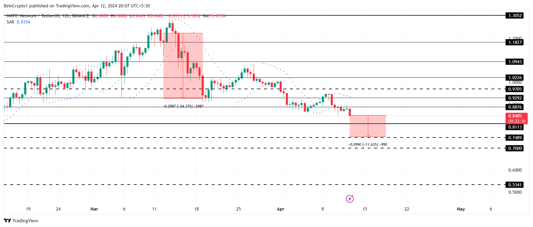 MATIC price is currently witnessing a consistent drawdown, bringing it closer to the critical support of $0.7489. Given the aforementioned market cues, it is likely that the Polygon native token will lose this support.