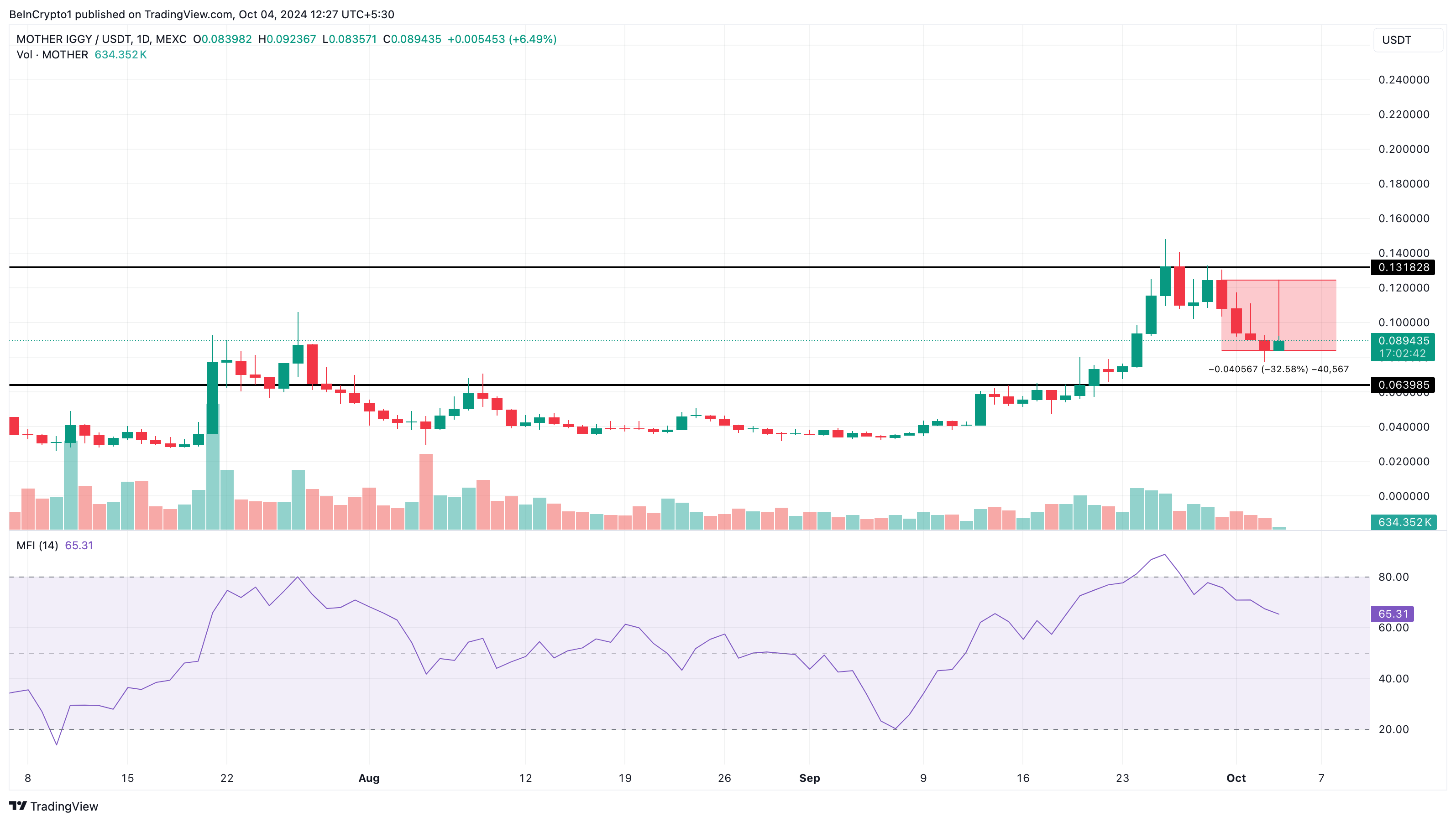 Should this be the case amid a lack of buying pressure, MOTHER’s price could extend its losses and hit $0.064. But if the slight uptick turns out to be a significant breakout, the prediction might be invalidated. In that case, the meme coin might jump to $0.13.