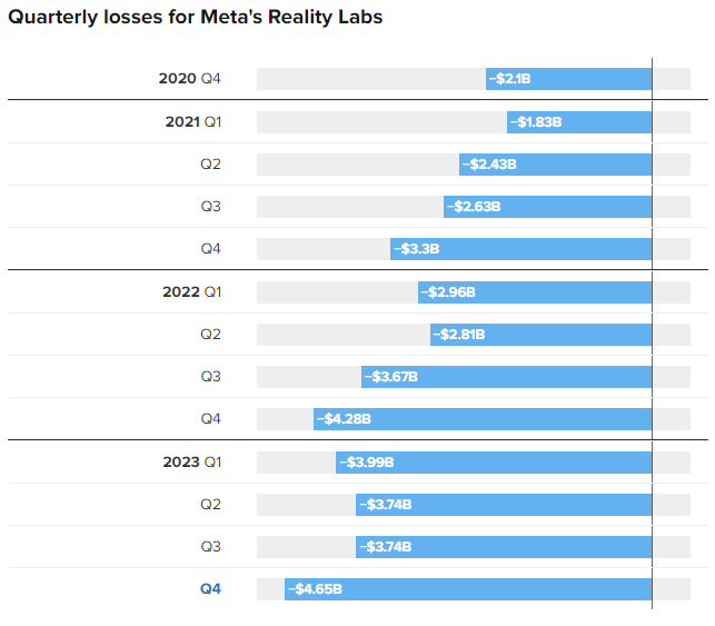 Meta’s ambitious journey into the metaverse, spearheaded by its Reality Labs division, is no stranger to financial challenges. The tech giant, formerly known as Facebook, reported a massive $4.65 billion loss for its Reality Labs in the fourth quarter.