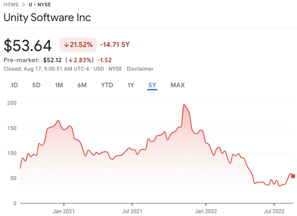 Significantly, Unity had a 61% market share of the gaming market by the end of 2021. This makes the company’s stock performance throughout much of the year unsurprising. Unity has been impacted by the tech stock sell-offs of 2022. But the stock’s proximity to the gaming sector is likely to make it a trailblazer as Web3 develops.