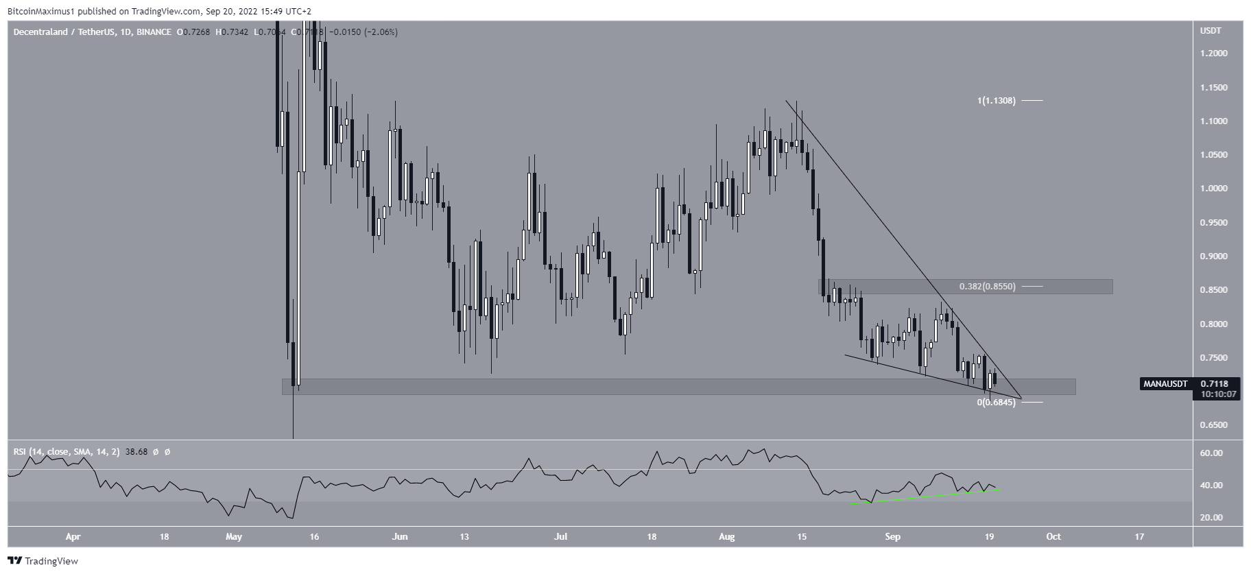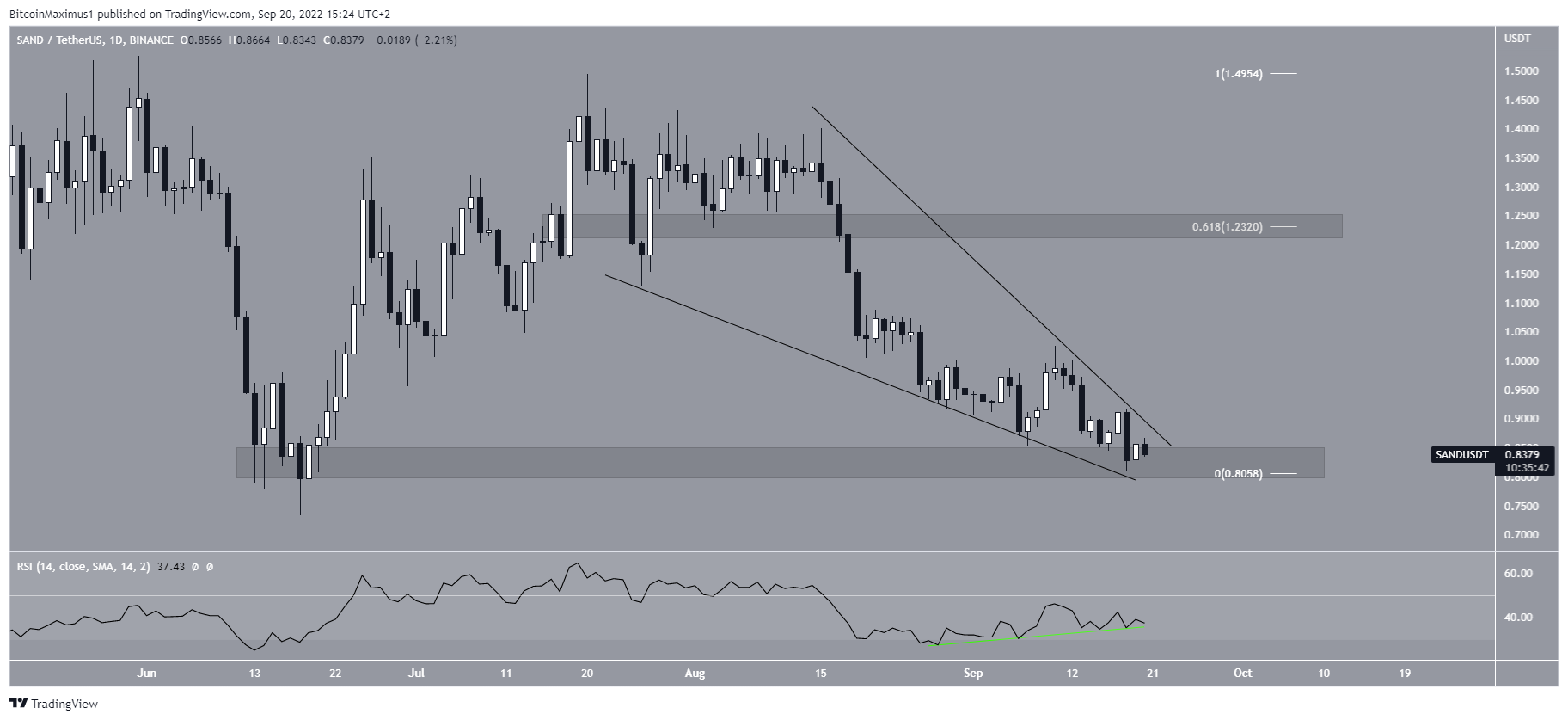 SAND has been falling inside a descending wedge since reaching a high of $1.42 on Aug. 14. The descending wedge is considered a bullish pattern, meaning that an eventual breakout from the pattern is expected.