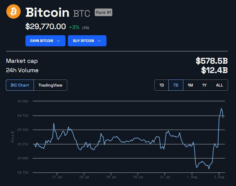 Bitcoin prices were up 3% on the day at $29,770 at the time of writing. However, the asset still remains tightly range-bound.
