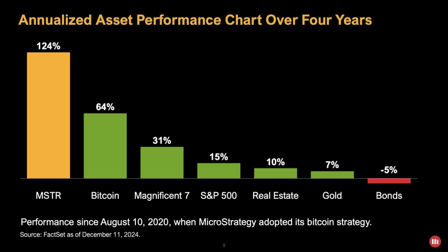 Meanwhile, Executive Chairman Michael Saylor attributes the company’s success to its Bitcoin-focused strategy. Over the past four years, MicroStrategy’s stock has surged by 124%, outperforming major benchmarks like the S&P 500.