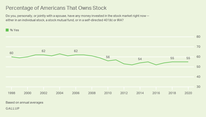 As with Bitcoin, the only available workaround is broad and non-specific, but nevertheless offers something of an insight that would otherwise not be available. The chart below is from a U.S. household Gallup poll conducted in June 2020.