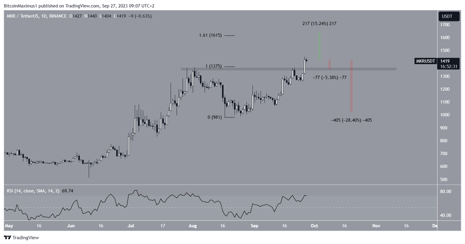 Maker (MKR) has been one of the top-performing cryptocurrencies in the market this year. It reached a new yearly high of $1,450 on September 26.