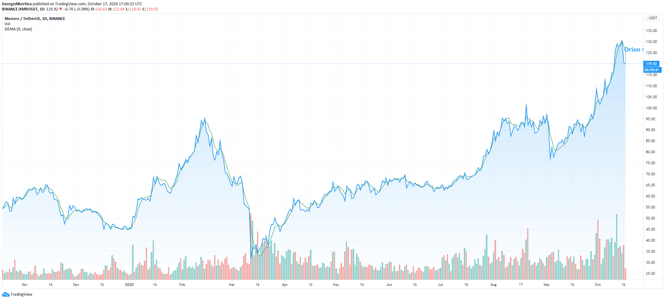 Monero has seen an almost 400% gain since March lows, with the past few months being particularly lucrative. The week ending Oct. 11 saw a 23% price increase in Monero. Meanwhile, Zcash, another privacy coin, saw a 17% jump over the same period.