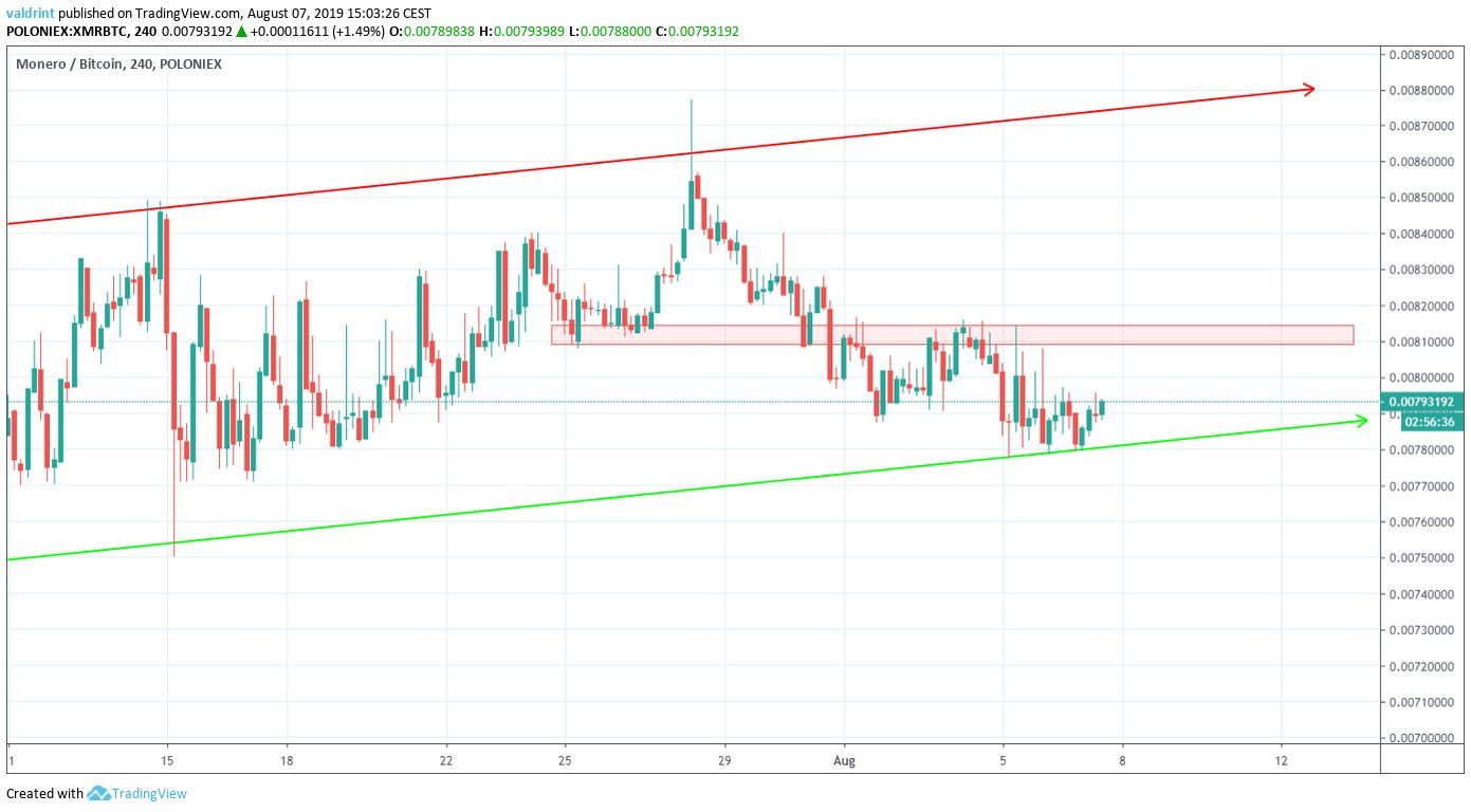 A look at the four-hour time-frame shows that XMR has been trading inside an ascending channel since reaching the aforementioned low on July 4.