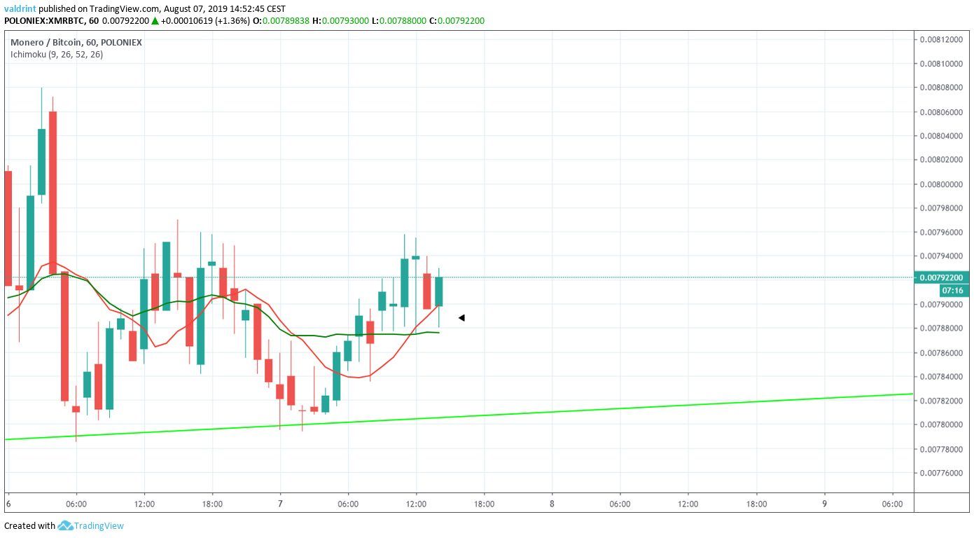 On July 4, 2019, the Monero price reached a low of ₿0.0074. An upward move followed and the price reached a high of ₿0.0094 on July 8. Since then, XMR has been decreasing, trading in a range between ₿0.0078 and ₿0.0086.