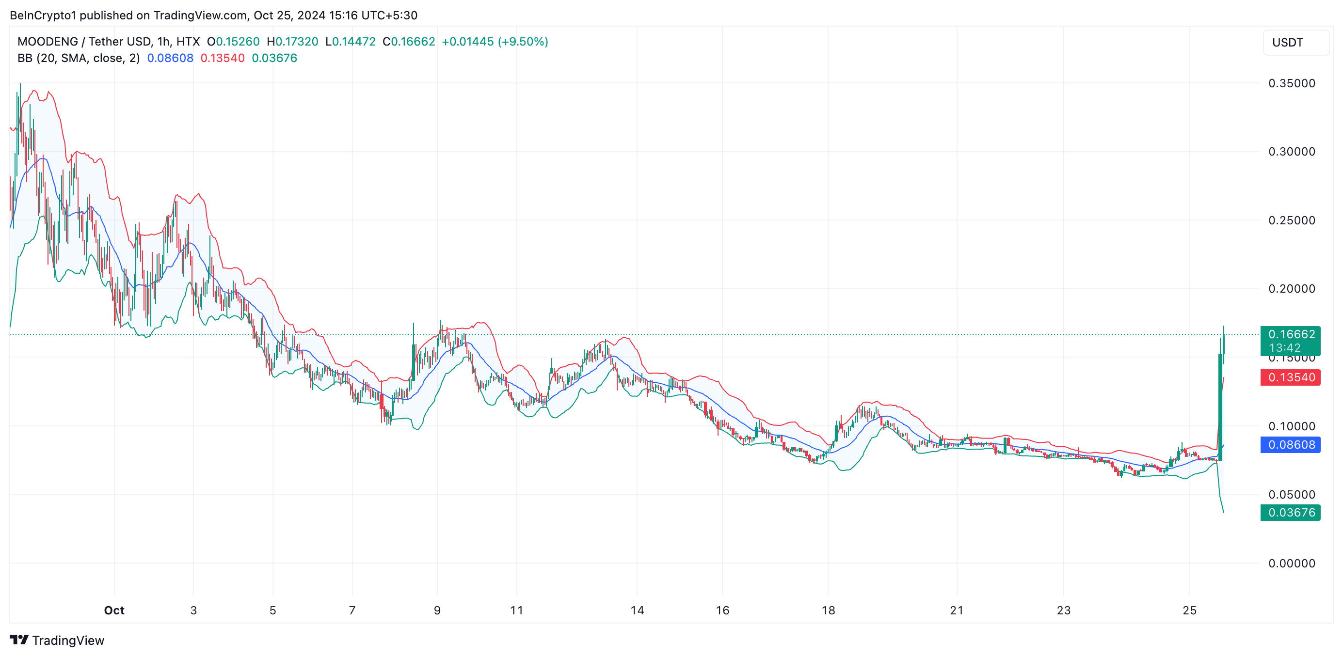 SponsoredAn RSI reading of 88.65 signals that an asset is extremely overbought. This RSI value is unusually high, suggesting that MOODENG’s price has moved very quickly over a short period and may be due for a pullback or correction.