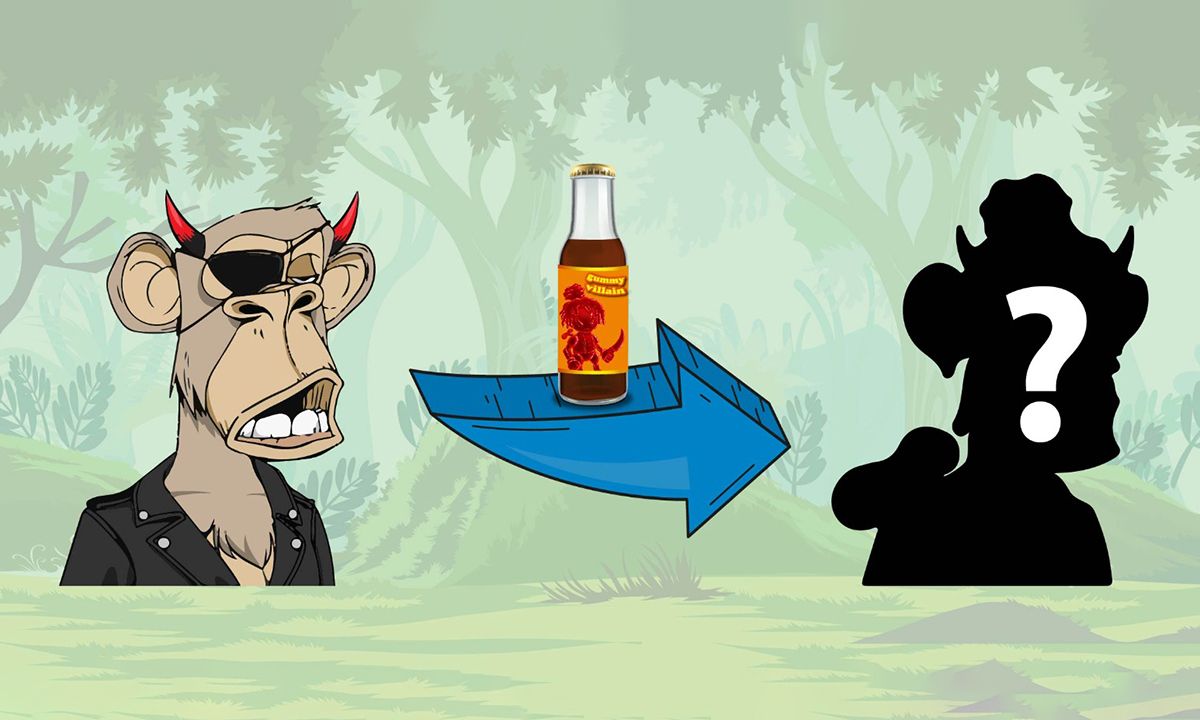 At the same time, Dough-Boy collaborated with an NFT collector to combine his own Gummy Villain with the collector’s BAYC #8155, traded earlier for 106ETH (over $320,000), to create “Bored Ape Gummy”.