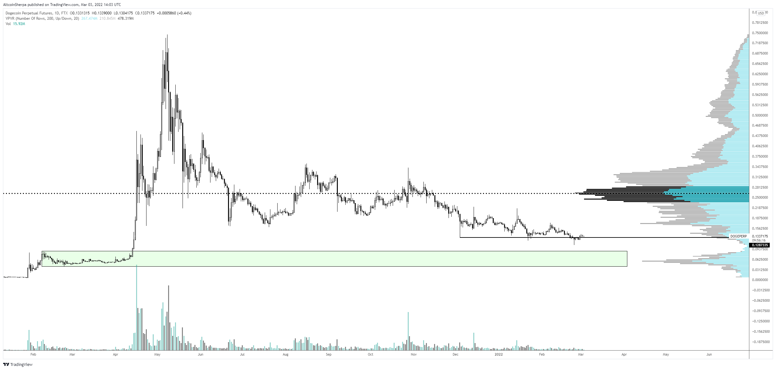 Conversely, the closest support area is all the way down at $0.055.