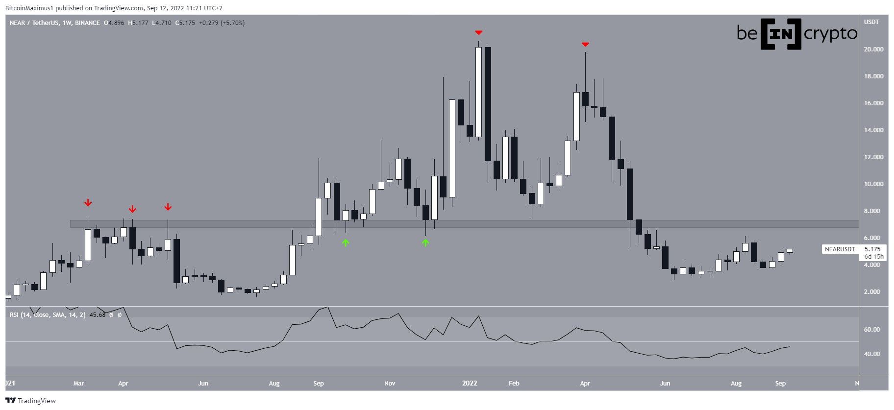 Moreover, the weekly RSI is increasing but is still below 50. A RSI movement above 50 would likely also cause a reclaim of the $7 area, confirming that a bullish reversal has begun.
