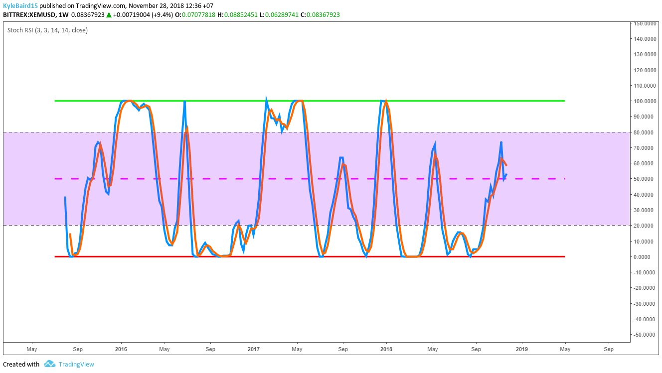 If NEM is able to regain stable ground above the $0.10 mark and establish itself outside of a descending trend, there is a chance of attacking the $0.18 to $0.20 level.