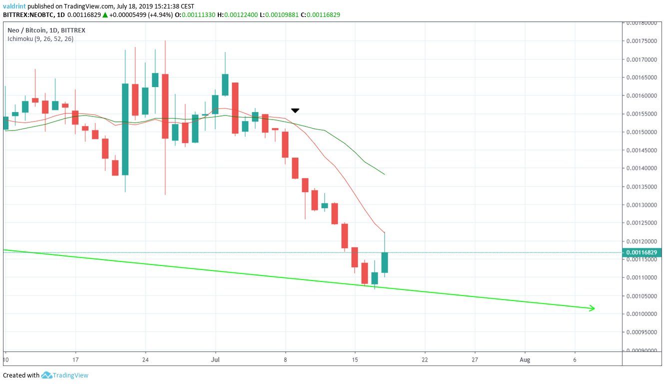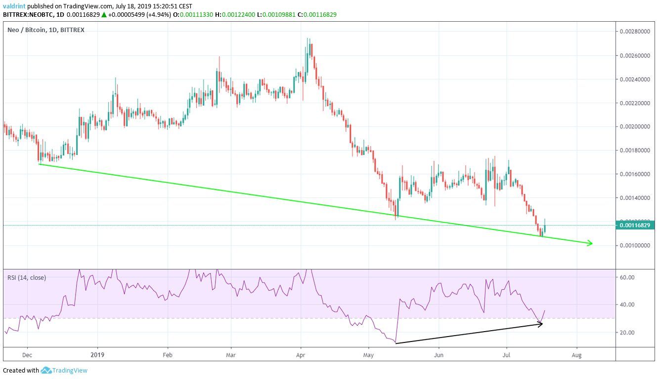 - NEO/BTC has been decreasing since the beginning of July.