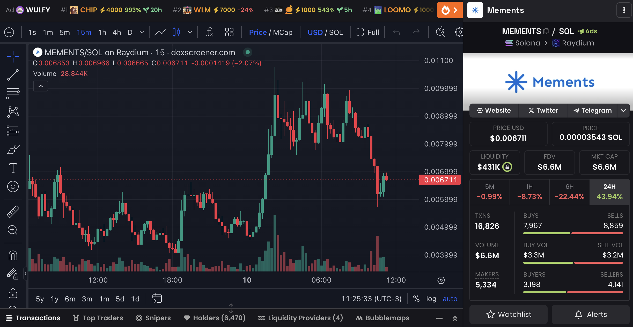 Since its launch, MEMENTS has shown strong activity, with nearly 17,000 daily transactions and almost 6,500 holders. Its current market cap stands at $6.7 million.