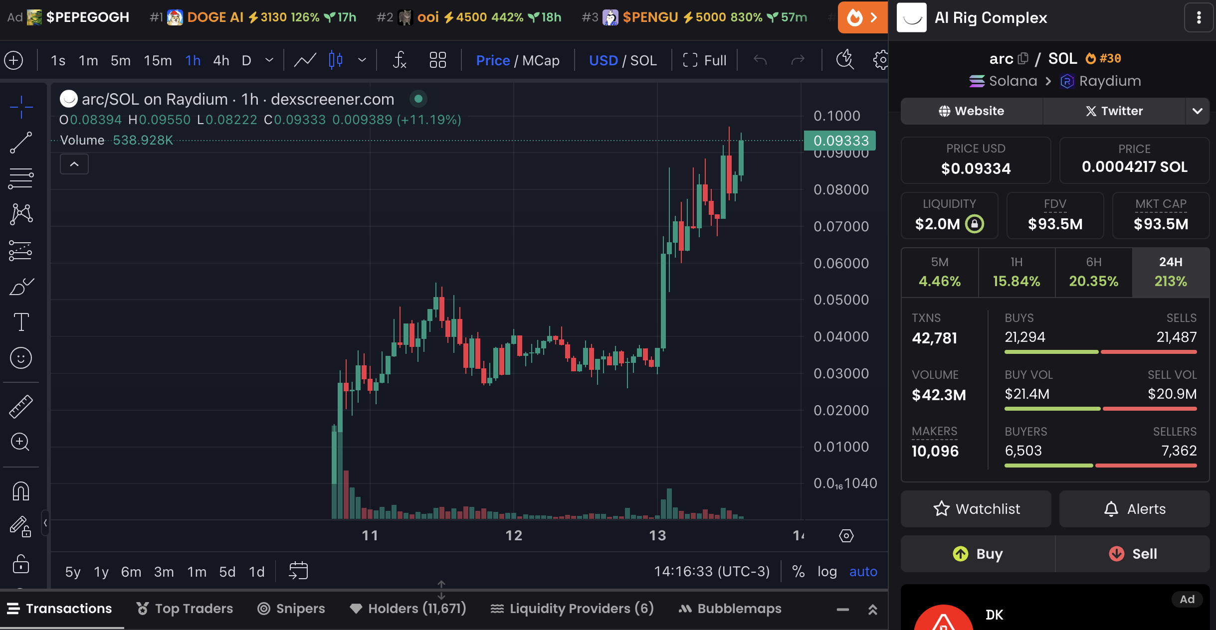 ARC, launched on Pumpfun three days ago and now graduated into Raydium, has quickly gained traction with more than 40,000 daily transactions and over 11,600 holders.