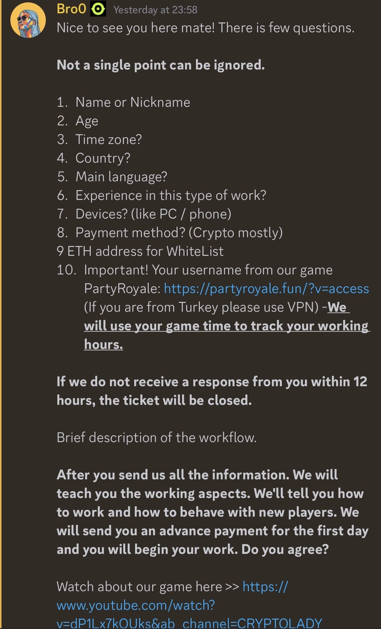 Scammers use various strategies to trap the victims into installing the malware. For example, on social media, some scammers pose as employers who offer jobs that require downloading software to track working hours. These offers come with a sense of urgency, pushing the potential victim to download the application quickly.