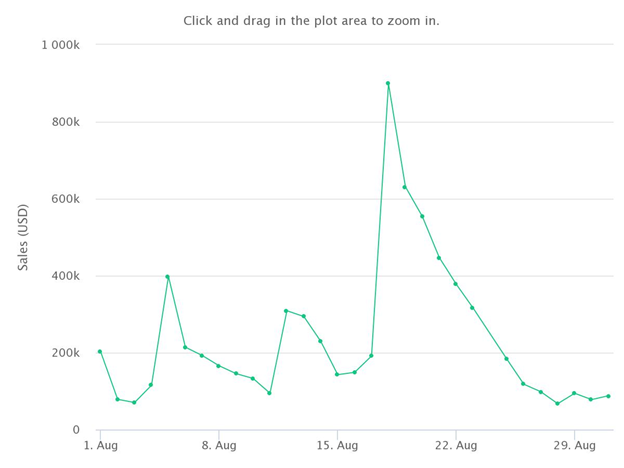 As of Sept. 18, NBA Top Shot had generated sales of $2.9 million while NFL ALL DAY had sales in the region of $8.3 million. With less than two weeks till the end of the month, there is a huge chance that NFL ALL DAY could have more than five times the sale of NBA Top Shot by the time October rolls around.