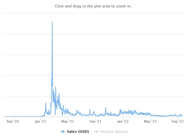 With that said, NFL ALL DAY’s all-time sales are only around $50 million — 20 times below that of NBA Top Shot – a top 10 NFT collection by sales volume.