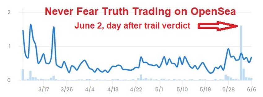 The portraits created by Depp feature friends and heroes of the actor including Hunter S. Thompson and Heath Ledger, and while the collection was minted in Jan, the NFTs enjoyed increased interest over the course of the trial. OpenSea metrics show a noticeable spike in activity the day after verdict day in particular.