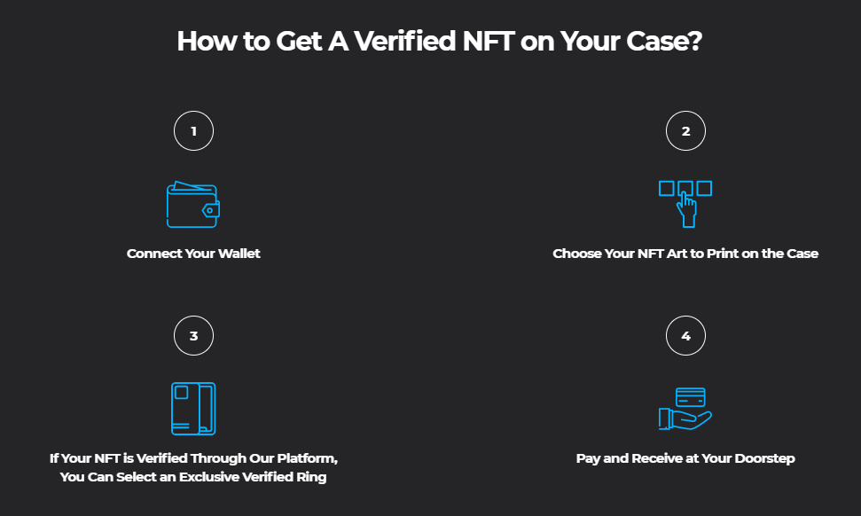 So how does it work? Users can verify NFTs from their Ethereum wallet to prove authentication. Then, they can print their NFTs onto the Casetify phone cases. Buyers can pay in ETH or USD to have the product printed and shipped to their door.
