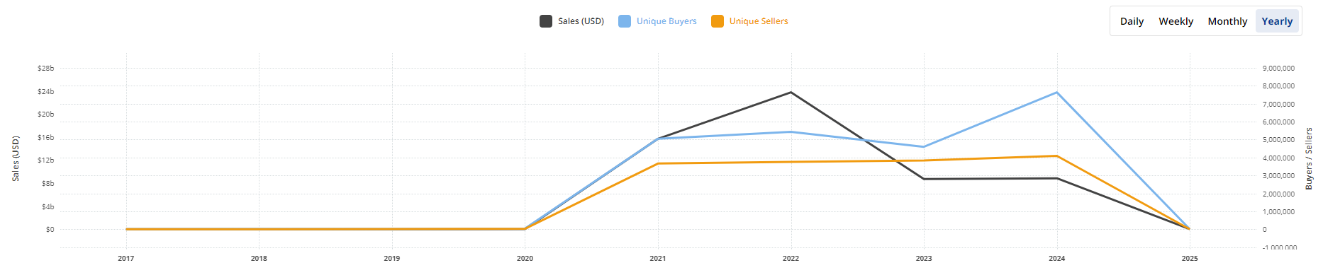 This 1.1% year-on-year growth reflects both the potential and challenges within the digital collectibles market.