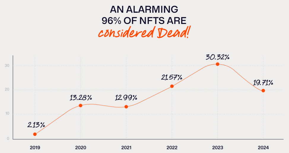 Following a remarkable boom in 2022, the hype surrounding non-fungible tokens (NFTs) is fading, with a recent report revealing that 96% of NFT collections are now considered dead.