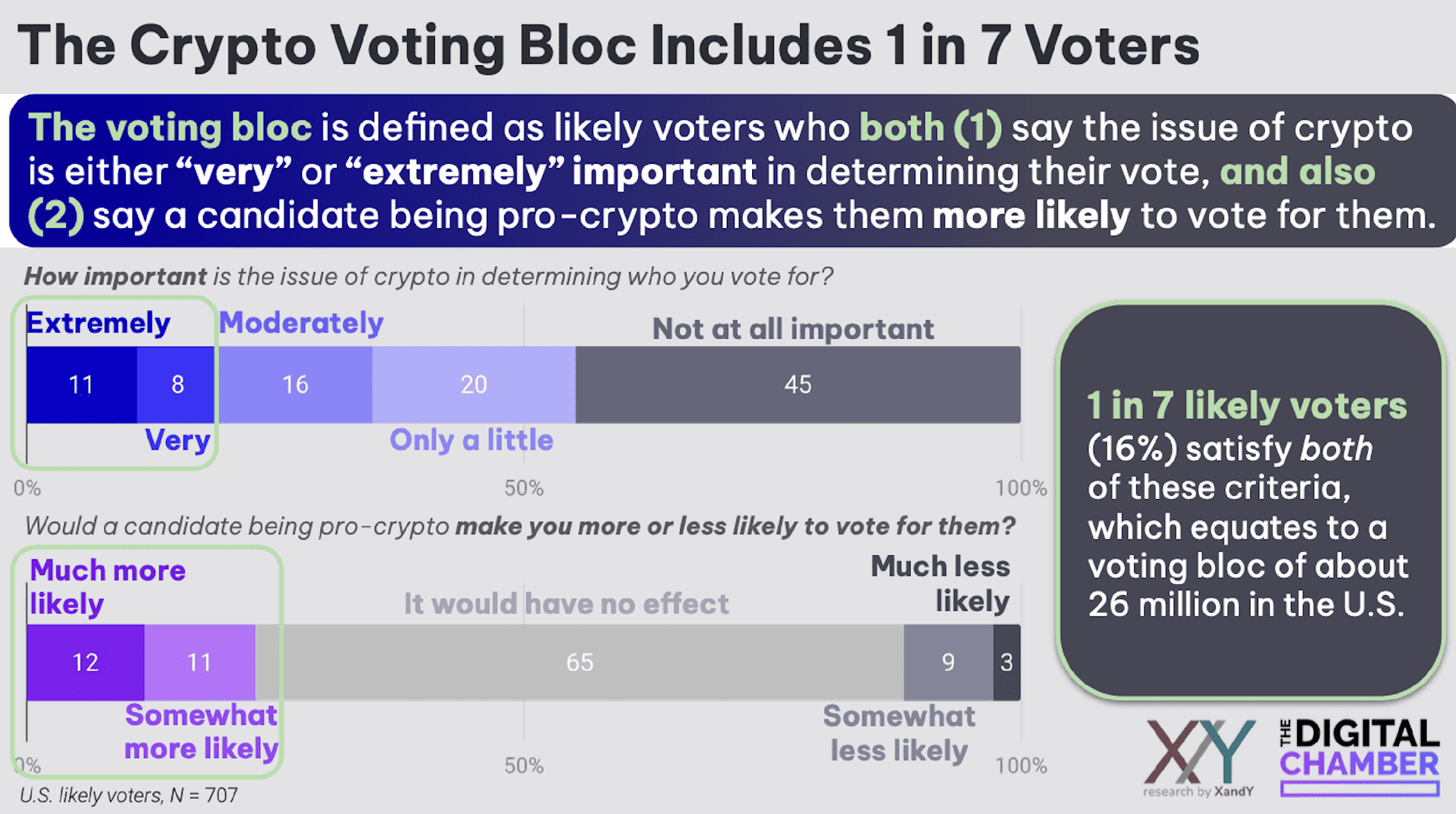 A separate poll from The Digital Chamber suggested that about 1 in 7 likely voters considered a candidate’s crypto stance to be “very important” in determining their vote.