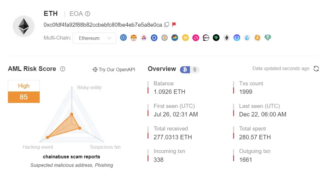 SlowMist revealed that a wallet linked to one of the phishing websites of the group received a total of 1,055 NFTs and made a profit of approximately 300 ETH through sales. According to the report, the wallet was initially funded through Binance. The report added that the wallet interacted with several risky addresses.