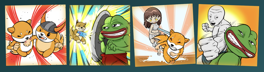 The game features battles between the most famous meme coin mascots. The initial roster contains 11 meme coin fighters, each with unique skills, strengths and weaknesses.