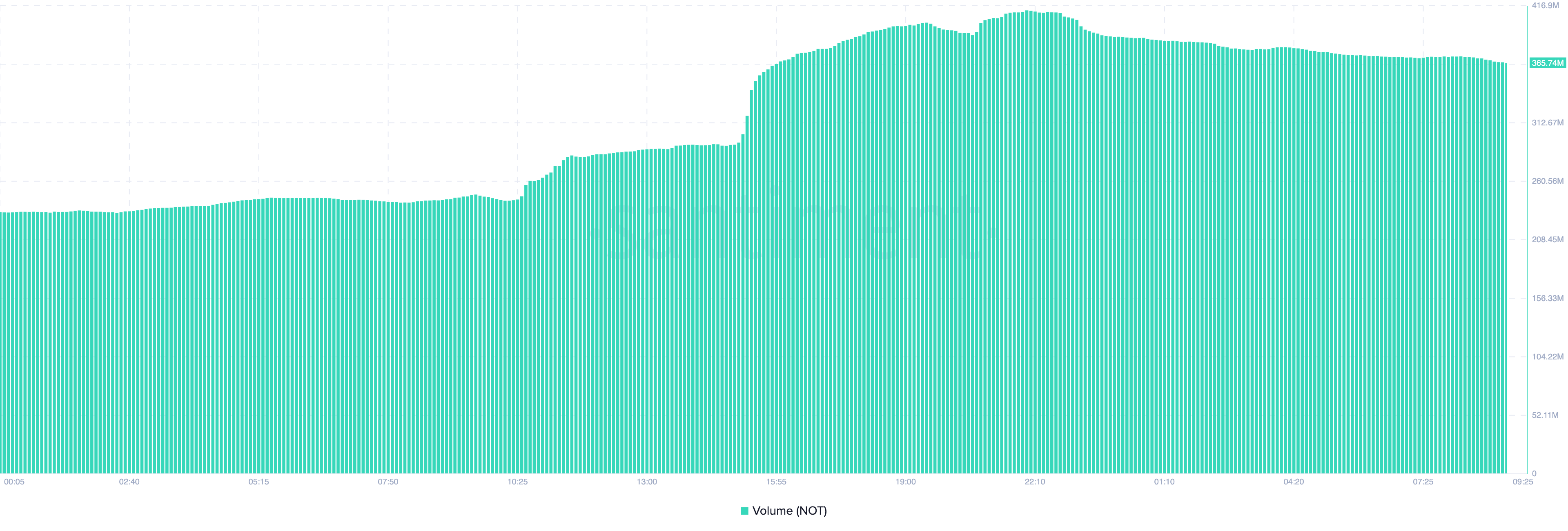 Following this judgment, Notcoin’s price surged to $0.0092. Like the cryptocurrency’s market value, the volume jumped by 50% within the last 24 hours, reaching a peak of $412.84 million.