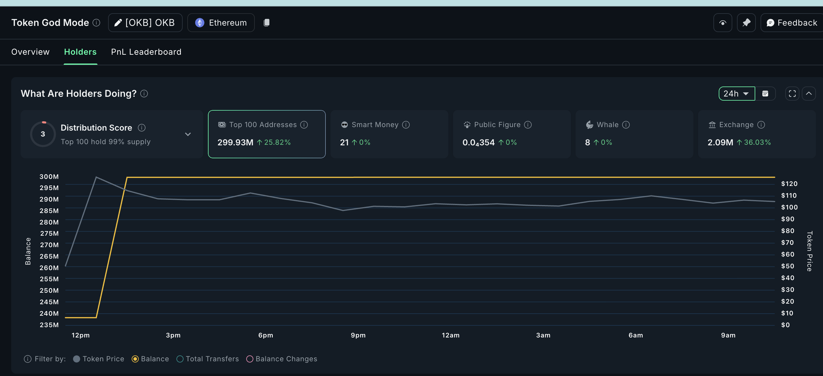 While exchange inflows show a wave of potential selling, one cohort has been doing the opposite. The top 100 OKB addresses now hold 299.93 million tokens — and that’s after a 25% increase in holdings.