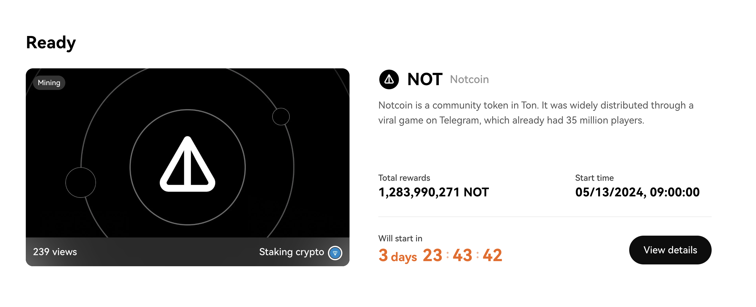 - Staking Period: May 13, 2024, 06:00 UTC to May 16, 2024, 06:00 UTC