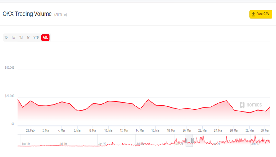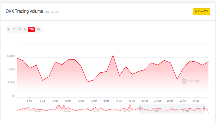 In addition to this, OKX saw a year-over-year monthly increase of 62% for March. In March 2021, OKX’s trading volume was around $428 billion.