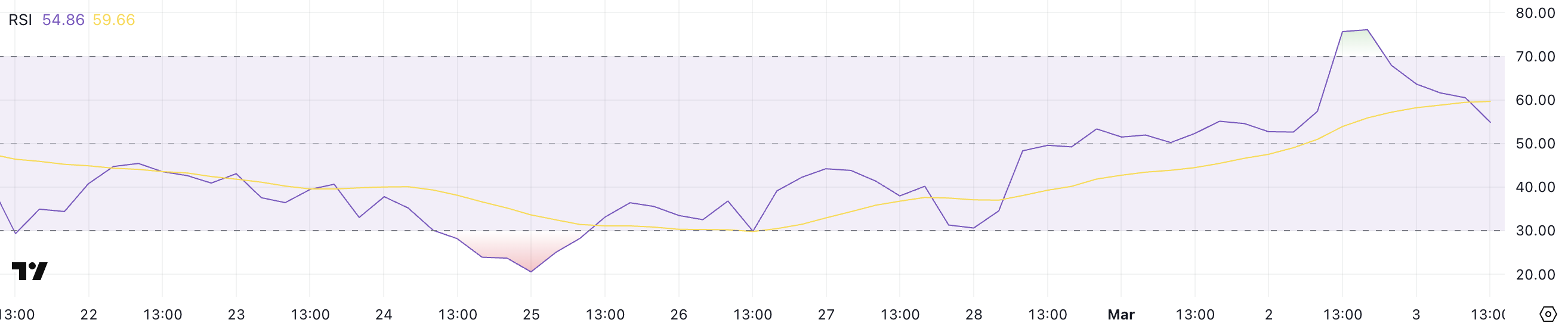ONDO surged in momentum yesterday, pushing its Relative Strength Index (RSI) to 76.1 before cooling off to 54.8.