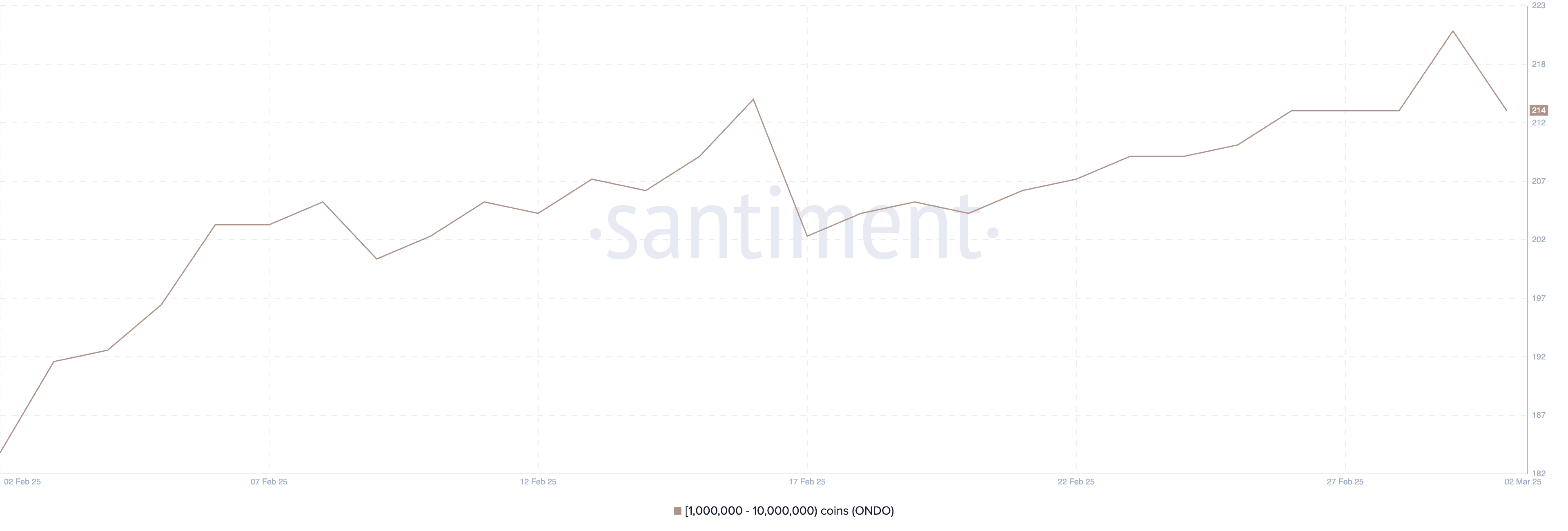 The number of ONDO whales – wallets holding between 1 million and 10 million ONDO – had been steadily increasing since February 17, rising from 203 to 221 by March 1.