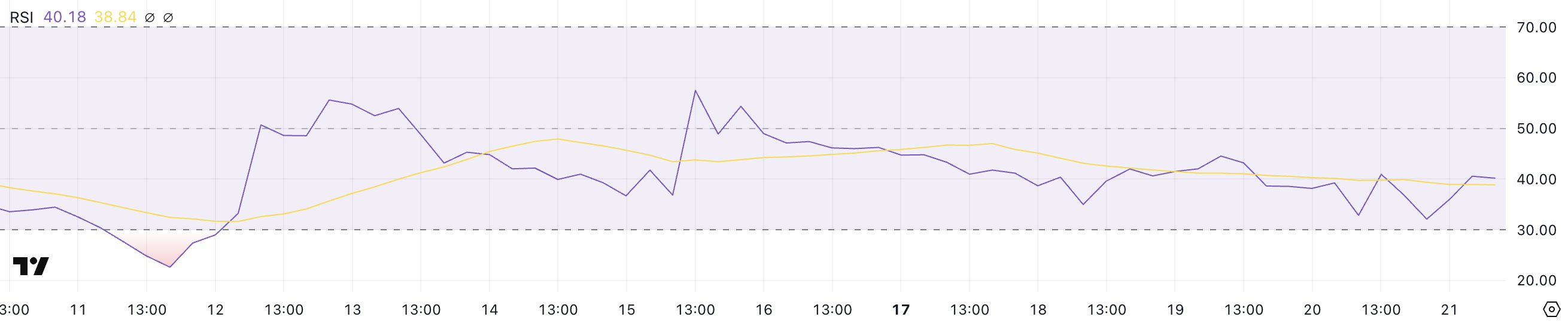 Onyxcoin (XCN) has fallen 16% over the past seven days, although it’s up by 52% in the last 30 days. The XCN Relative Strength Index (RSI) is currently at 40.1, indicating mild bearish momentum but not strong enough to signal overselling.